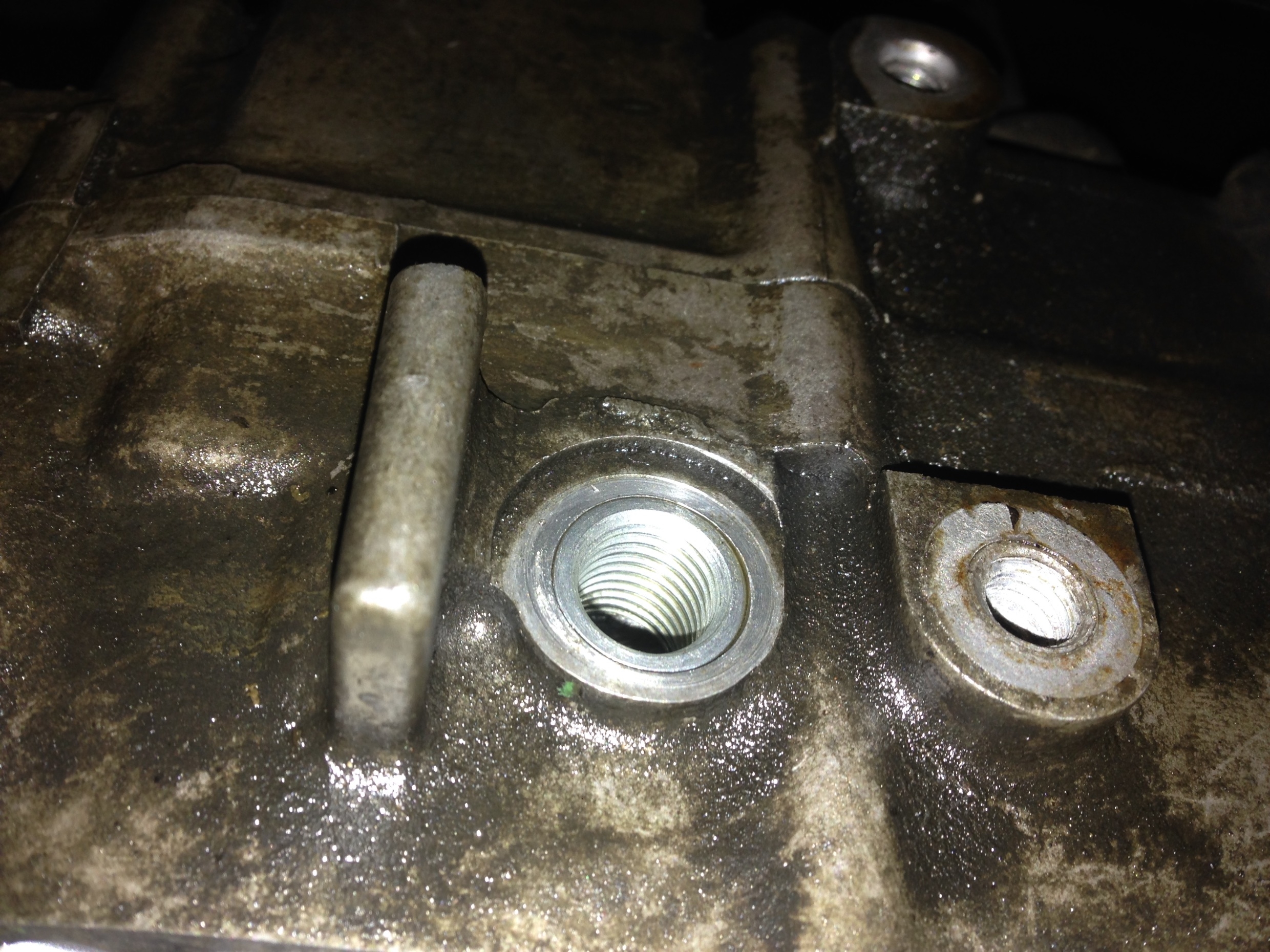 Was mich noch ärgert. Die Ölablasschraube sitzt in so einer Schraubenhülse.