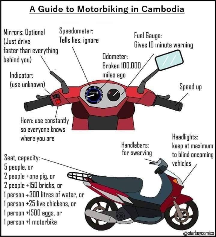 Als ich vor 15 Jahren mit Studiosus dort (Kambodscha) war, duerfte diese Fahrinstruktion tatsaechlich von einem Allen und Jeden gelesen und beherzigt worden sein. Sogar unser Reisebus hatte keine Nummerntaferln, weder vorn noch hinten.