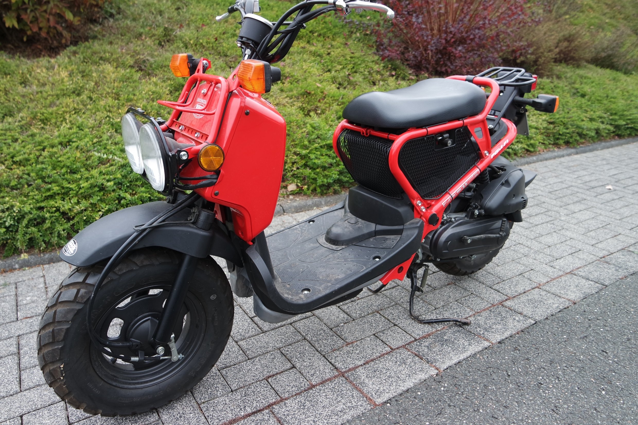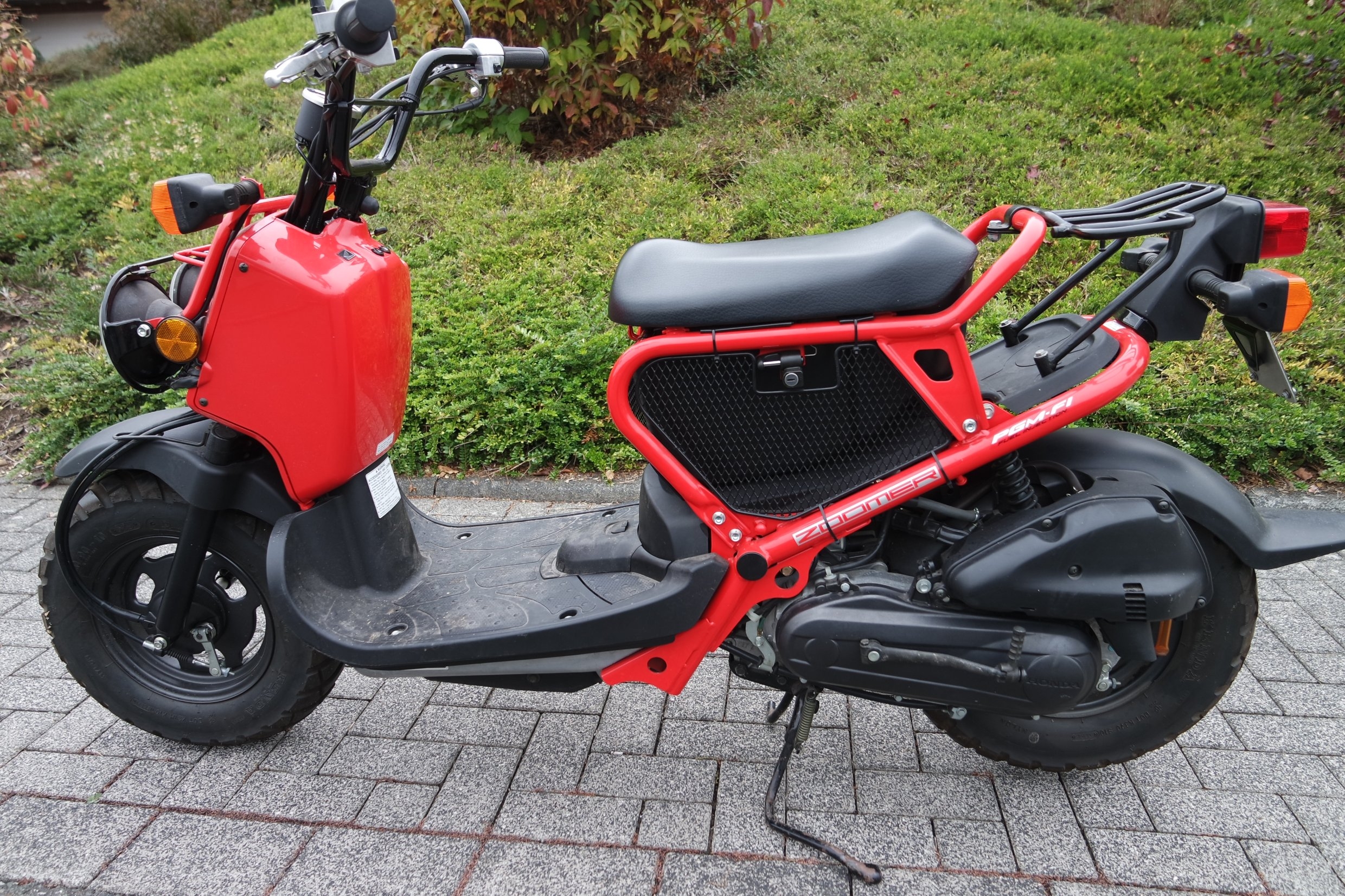 Ich fange mal mit der (dem?) Zoomer an. Gekauft von einem Honda-Sammler (er hatte zu Spitzenzeiten über 100 alte Modelle), der sie vor 9 Jahren aus 1.Hand von einem Rentner gekauft hat. Dann damals damit ein paar Runden im Dorf gedreht und dann ohne weitere Arbeiten in die Sammlung gestellt. Letztes Nummernschild war von 2009, mit dem Wissen habe sie sie dann gekauft. Mit dabei gab es einen Schlüssel und eine "Betriebserlaubnis" §21 für die Umrüstung 2005 als Mofa. Der Rentner hatte wohl keinen Führerschein und durfte nur Mofa fahren. Drosselsatz von AlphaTechnik (Zündspule und Varioring) war mit dabei, wurde aber wohl nie verbaut und dienten nur zur Eintragung in die Papiere.