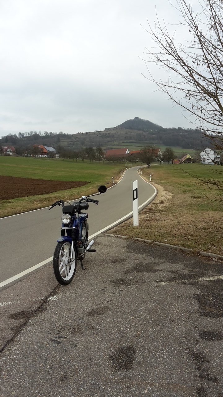 Gestern habe ich die erste richtige Fahrt absolviert. Auf kleinsten Sträßchen bei 10 Grad rund um den Hohenstaufen.