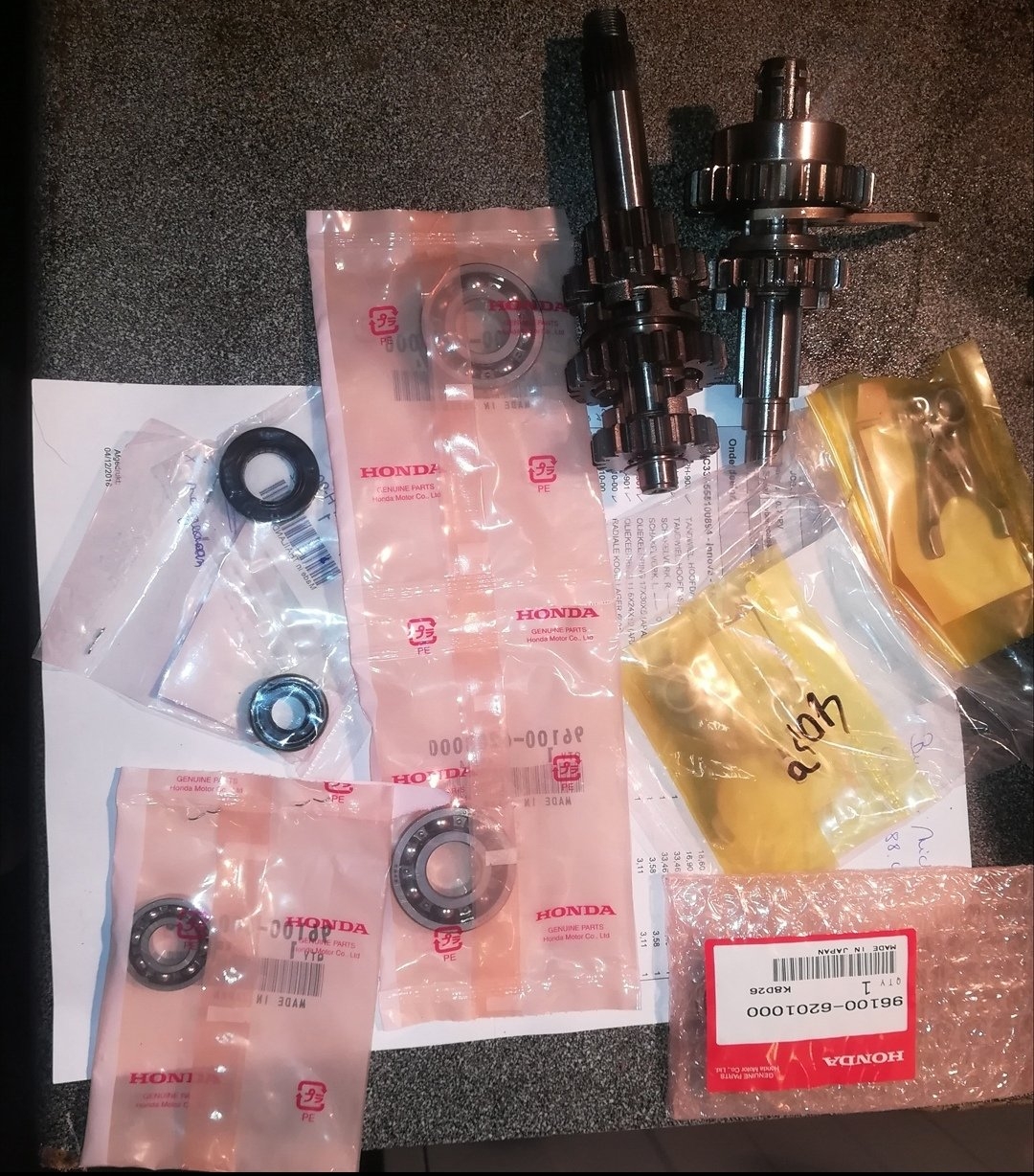 Got my parts from honda today.. New bearings, gears, schifter seals etc.. Now waiting for the whole kit.. Going to order that later.. It was a bit off a expensive month for me. But ok its winter there is no rush