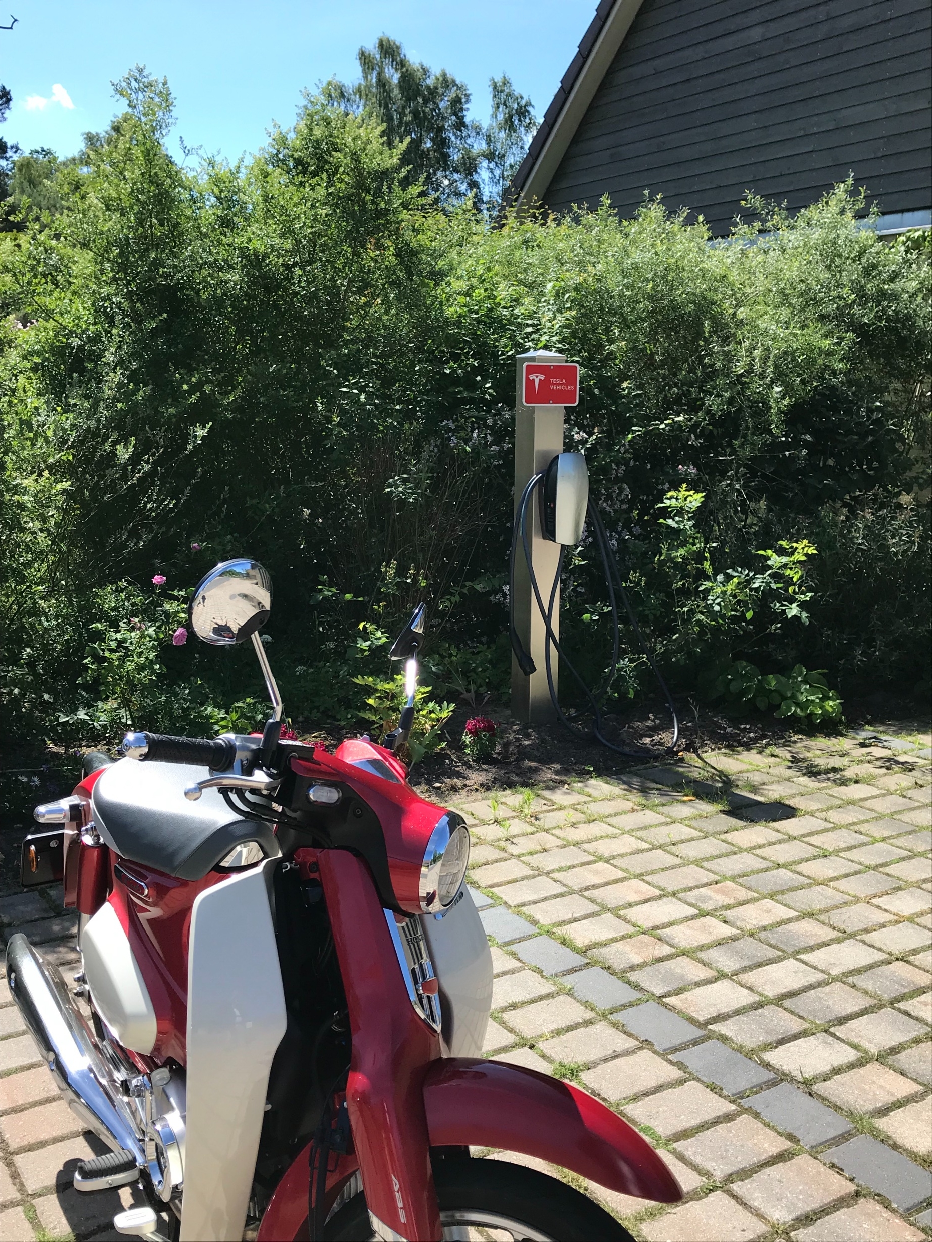 Wie man sieht hat sich Tesla farblich an meiner Honda C125A SuperCub orientiert: