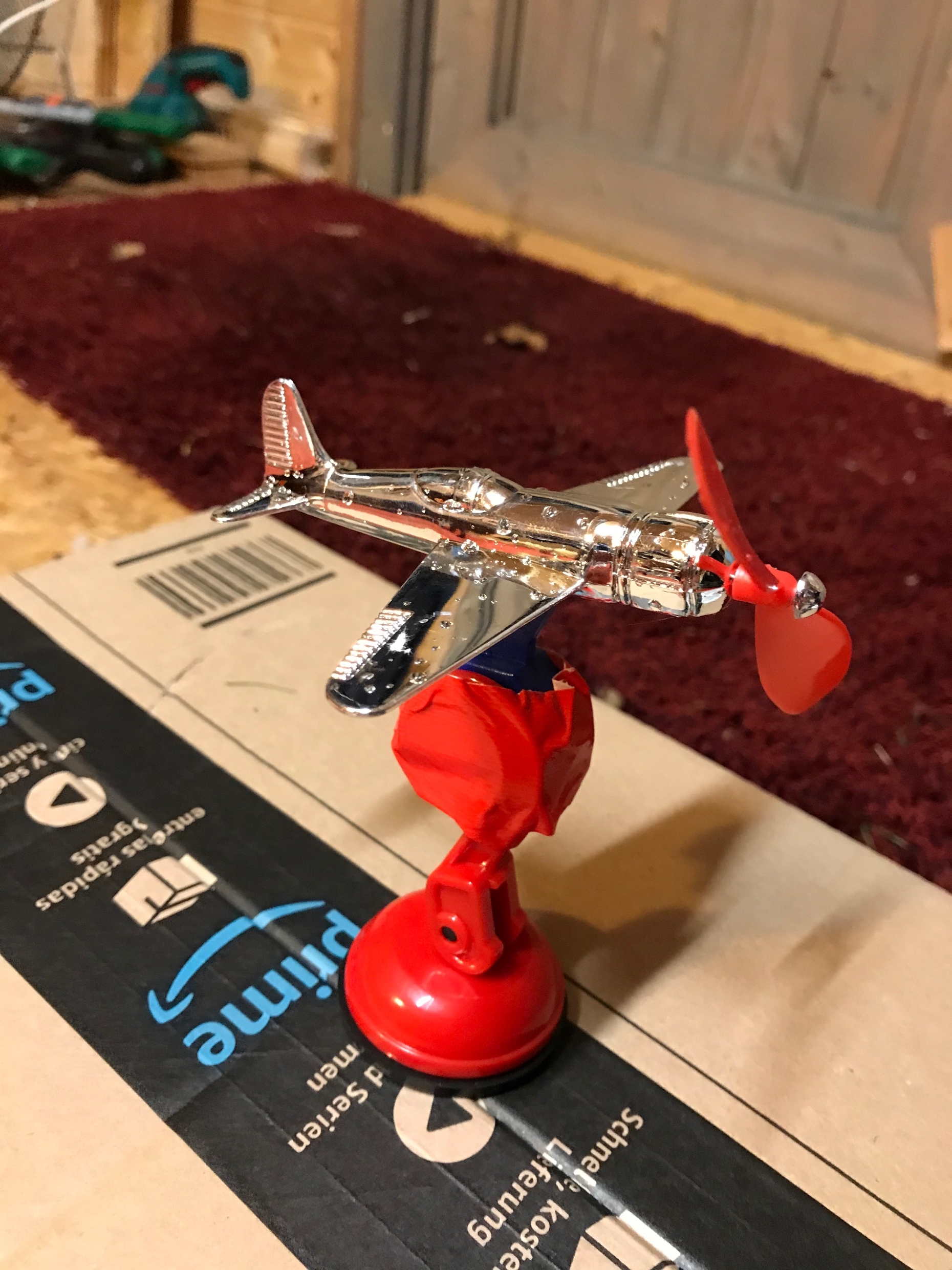 Der rote Propeller passt nicht. Vielleicht eine Anspielung auf den roten Sattel.
