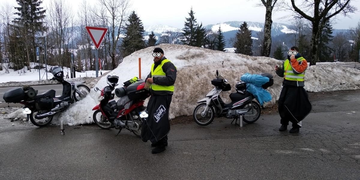 Wenn einen die Freunde im Stich lassen muss die Familie her halten...so war das schon immer! Und damit liefert sich quasi von selbst auch endlich der für jedermann nachvollziehbare Grund wieso ich die Monate zuvor 3 Suzuki Adressen „an Land gezogen“ habe. Entsprechend werden im Spätjahr 2018 meine beiden Brüder jeweils mit einem dieser tapferen Zweiräder ausgestattet, damit sie sich an das Fahrverhalten und die Schaltung gewöhnen können. Die anfängliche Skepsis legt sich schnell und spätestens nach einer kleinen Tagestour in die nahen herbstlichen Vogesen, sind alle „best friends“ mit den Kleinen, da sie dort final auch ihre Fähigkeiten abseits befestigter Straßen beweisen. Im Vorfeld werden noch die abgefahrenen Reifen getauscht, der Ölwechsel durchgeführt und sonstige Kleinigkeiten erledigt, damit es im März 2019 losgehen kann. Der Plan ist dieses Mal die zeitraubende Schweiz zu umfahren und stattdessen über Österreich nach Südtirol vorzudringen…allerdings ohne konkreten Plan, der ergibt sich….einzige Vorgabe: Wir haben 3 Tage Zeit. Da die letzten Familienausflüge zu Fuß stets mit Übernachtungen unter freiem Himmel verbunden waren, wollen wir dieser Tradition treu bleiben und werden lediglich dicke Schlafsäcke und eine Zeltplane mitnehmen, neben diversen Kochutensilien um auch nicht zu verhungern….man weiss ja nicht ob es in Italien zu der Jahreszeit außerhalb der Skigebiete etwas zu essen gibt.