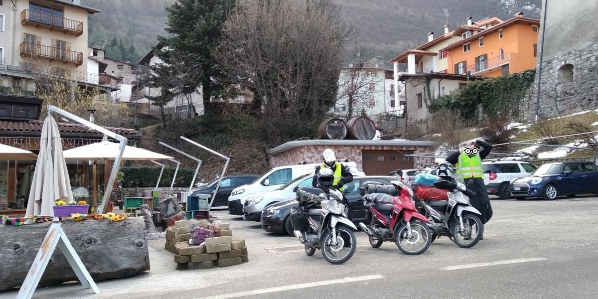Wenn einen die Freunde im Stich lassen muss die Familie her halten...so war das schon immer! Und damit liefert sich quasi von selbst auch endlich der für jedermann nachvollziehbare Grund wieso ich die Monate zuvor 3 Suzuki Adressen „an Land gezogen“ habe. Entsprechend werden im Spätjahr 2018 meine beiden Brüder jeweils mit einem dieser tapferen Zweiräder ausgestattet, damit sie sich an das Fahrverhalten und die Schaltung gewöhnen können. Die anfängliche Skepsis legt sich schnell und spätestens nach einer kleinen Tagestour in die nahen herbstlichen Vogesen, sind alle „best friends“ mit den Kleinen, da sie dort final auch ihre Fähigkeiten abseits befestigter Straßen beweisen. Im Vorfeld werden noch die abgefahrenen Reifen getauscht, der Ölwechsel durchgeführt und sonstige Kleinigkeiten erledigt, damit es im März 2019 losgehen kann. Der Plan ist dieses Mal die zeitraubende Schweiz zu umfahren und stattdessen über Österreich nach Südtirol vorzudringen…allerdings ohne konkreten Plan, der ergibt sich….einzige Vorgabe: Wir haben 3 Tage Zeit. Da die letzten Familienausflüge zu Fuß stets mit Übernachtungen unter freiem Himmel verbunden waren, wollen wir dieser Tradition treu bleiben und werden lediglich dicke Schlafsäcke und eine Zeltplane mitnehmen, neben diversen Kochutensilien um auch nicht zu verhungern….man weiss ja nicht ob es in Italien zu der Jahreszeit außerhalb der Skigebiete etwas zu essen gibt.