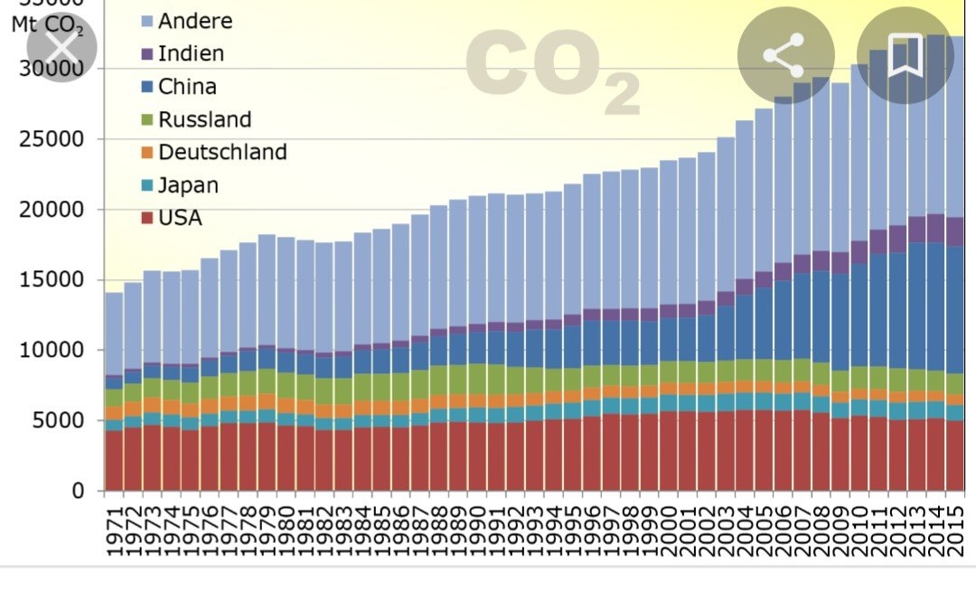 Die Tabelle, anfangend 1970er, spricht eine deutliche Sprache. Wir sind weltweit gesehen ein CO2 Fliegenschiss und wenn wir weiter rum diskutieren, werden wir sogar komplett aus dieser illustren Tabelle verschwinden oder in hellblau eingegliedert werden. Der weltweite Ausstoß kennt nur eine Richtung laut dieser Tabelle: steil nach oben (ausser bei Orange, dass sind wir).