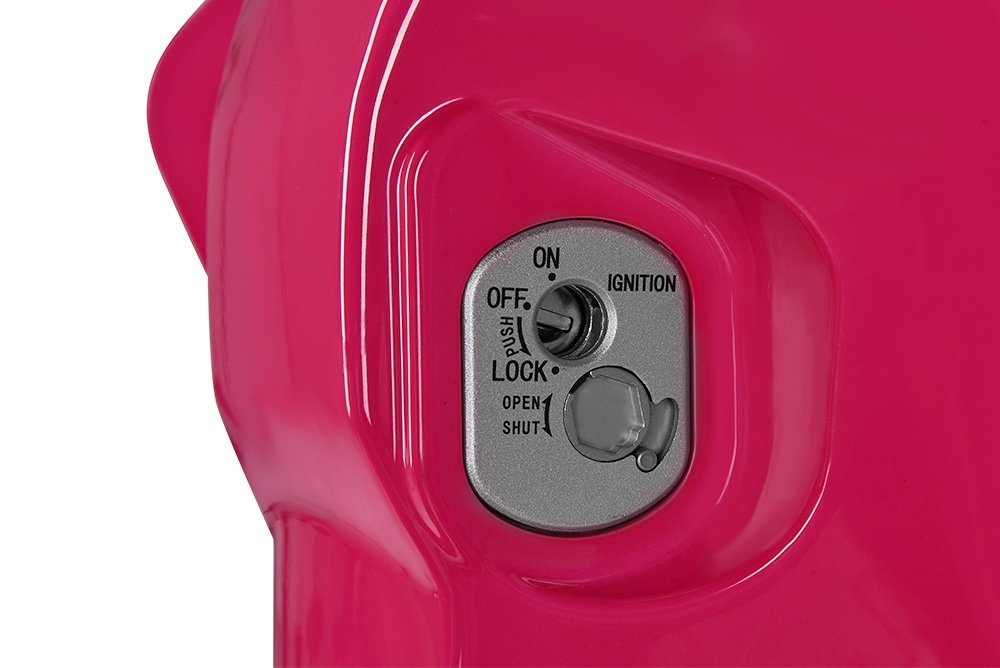Den pinken Roller braucht mal nicht abschliessen, das ist die Diebstahlsicherung lackiert.
