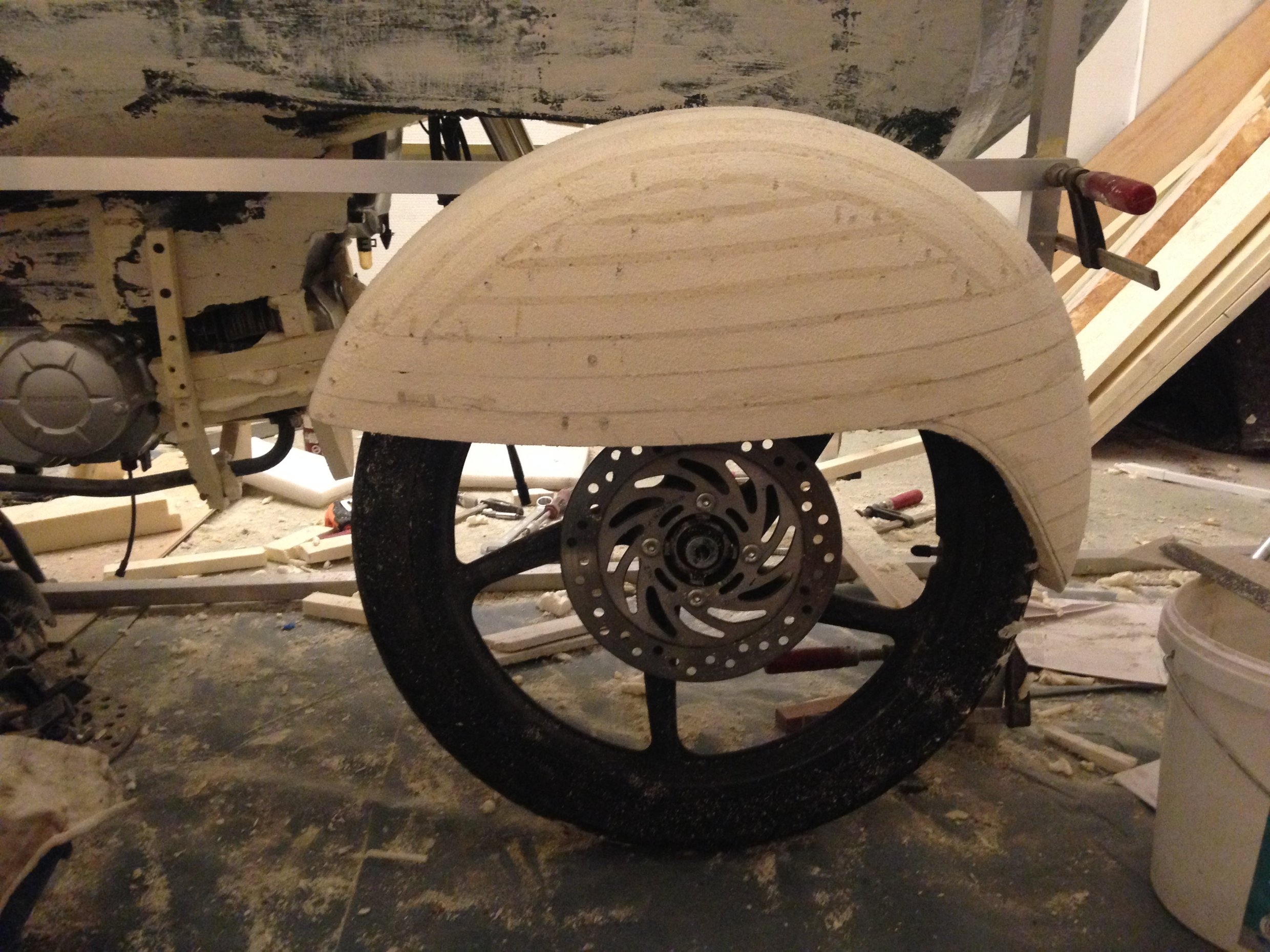 Die Form des vorderen Schutzbleches ist auch schon soweit fertig.