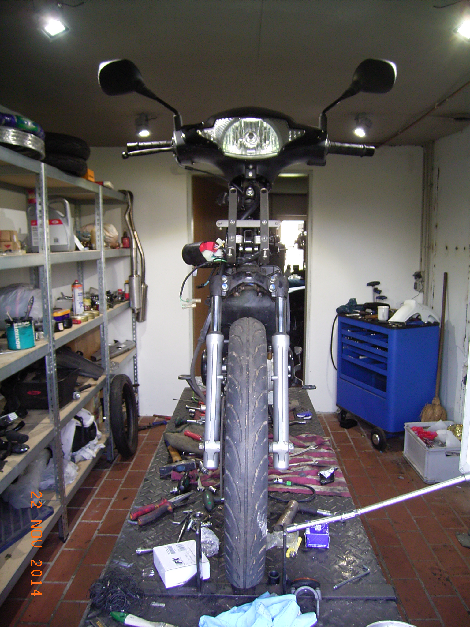 auf den Frontalbild sieht man die von Reinhard angefertigten Kanisterhalter aus feinstem Eselstahl