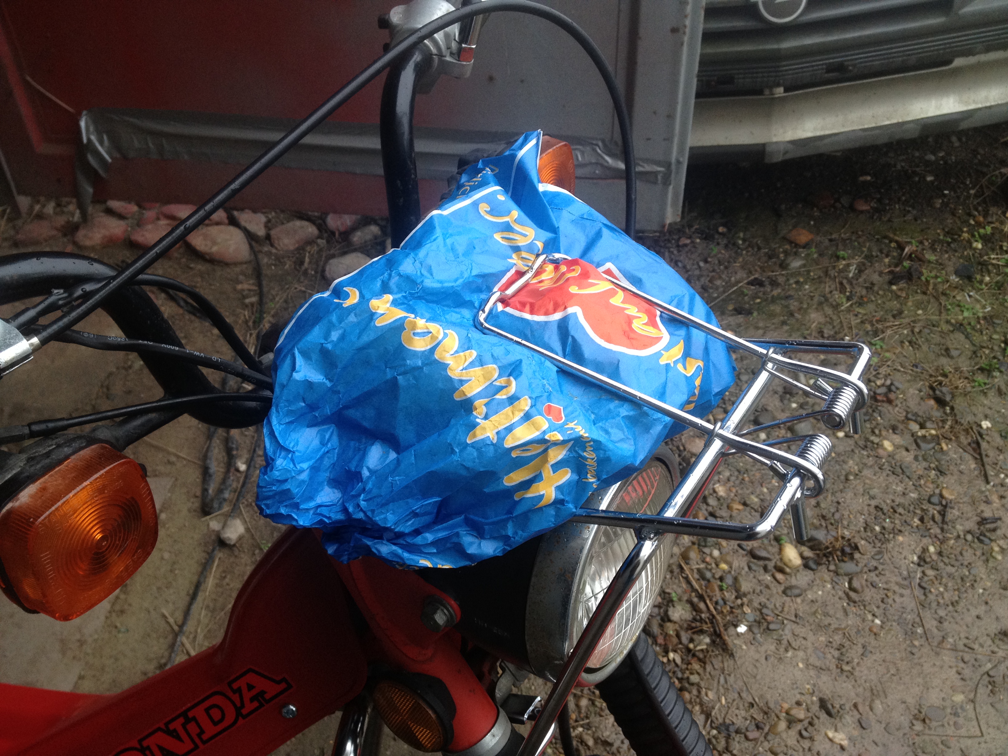 Sieht richtig cool aus. Vorallem du bist der Einzigste (so lange sich kein anderer meldet), der so einen hübschen vorderen Gepäckträger an einer CT 110 in Deutschland hat. Der ist ideal um Briefe und kleine Päckchen zur Post zu bringen. Deshalb aus "Posti"-Bike genannt. :superfreu: