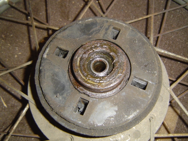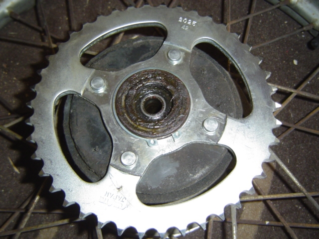 Die neuen Teile zurecht gelegt. Wie Sicherungsring und Achsenteile, 428er Kettenrad. Neue Bremsbeläge wurden verbaut, in diesem Baustadium sinnvoll. Ruckdämpfer kontrolliert, sind noch gut.