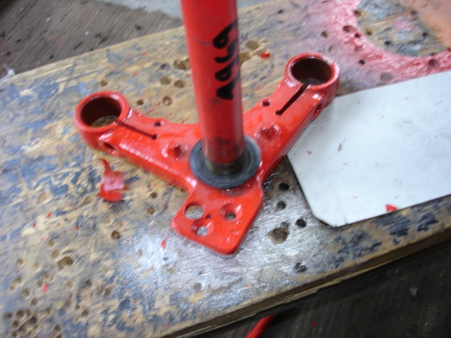 Dann der Einbau der Kegelrollenlager und die Gabel kann komplettiert werden.