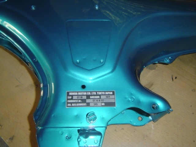 Auch auf dem Rücklichtträger wurde einer der wenigen Aufkleber der Honda CT 70 HK0 verklebt.