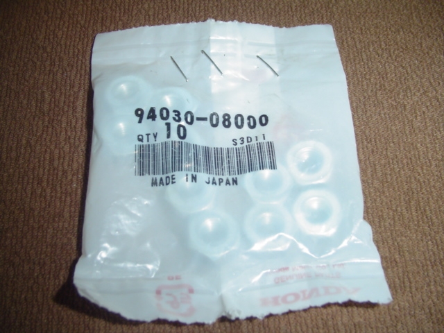 Sehr schön von Honda gibt es noch die netten 14er SW Muttern und passende Schrauben dazu. Sieht irgendwie gut aus, wenn auf sichtbaren Schrauben die Honda „8“ drauf ist.