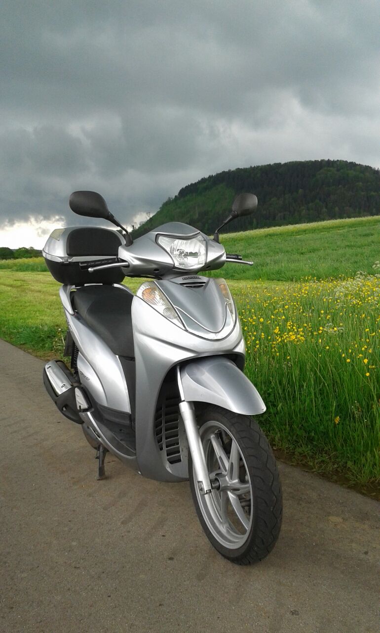 Ich hatte nämlich ein wenig die Befürchtung, dass er mit 169 kg mir zu schwer ist. Mein SH125 wiegt ca. 130 kg, was ja auch schon ganz schön viel ist, aber ich komme einwandfrei mit dem Gewicht und dem Roller zurecht. Es harmoniert, sozusagen.