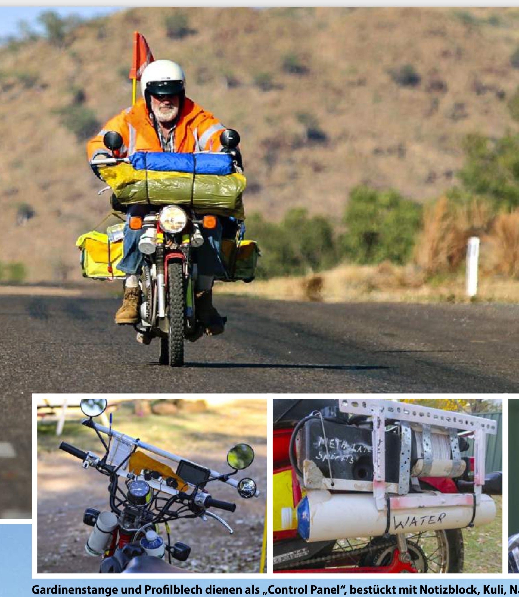 In der aktuellen MOTORRAD 06/2019 ist ab Seite 126 ein dreiseitiger Bereicht über einen 74-jährigen Noch-nicht-Rentner, der mit seiner CT110 durch West-Australien tourt.