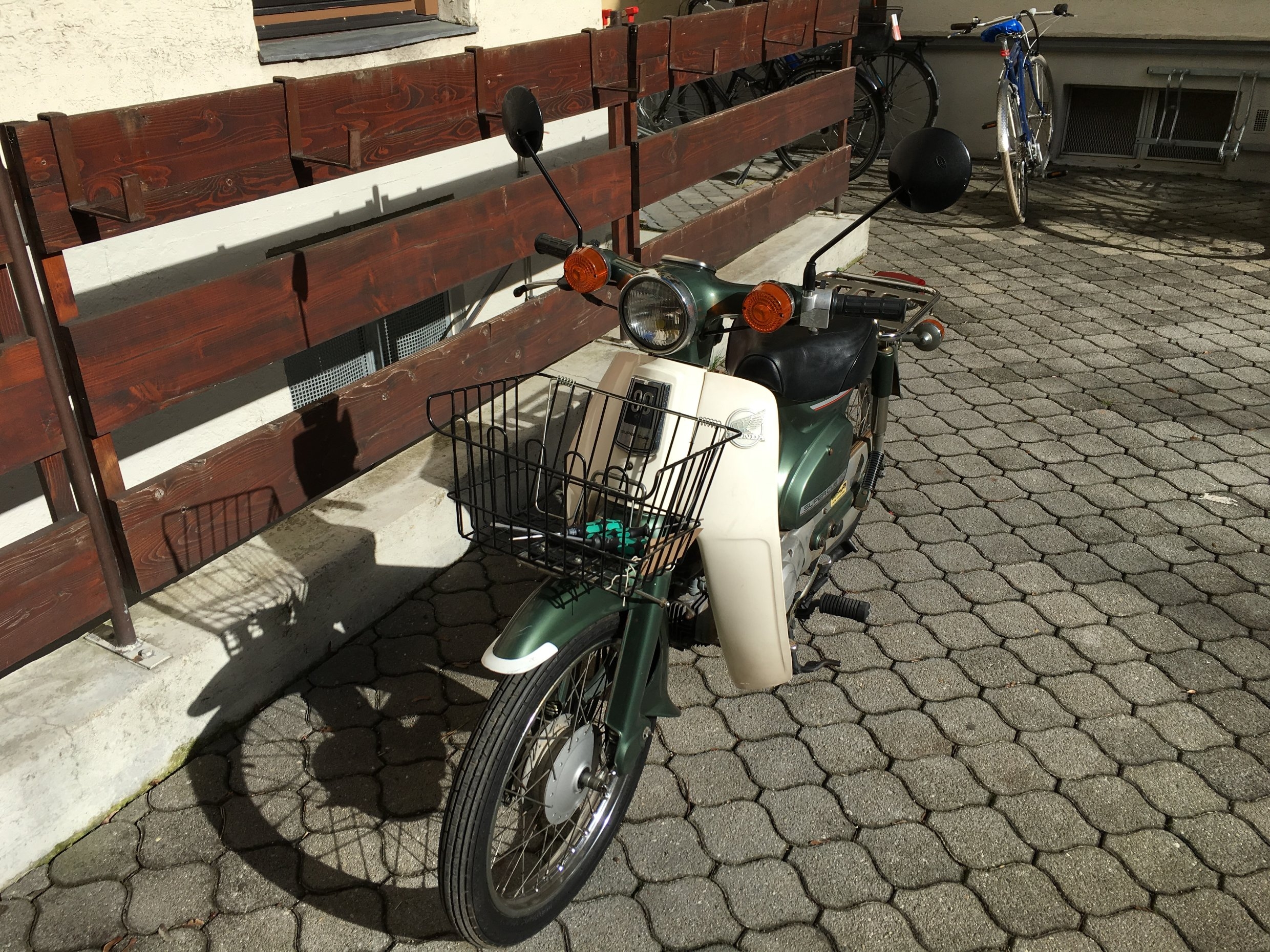 irgendwie dachte ich, ich muß meinen psychischen Problemen jetzt ein letztes mal die Stirn bieten und habe mir als "Projekt" eine Honda C90 gekauft. Ich habe sie bei einem Händler in England gekauft. Dieser importiert die Teile direkt aus Japan. Da er mir versichert hat, dass alle von mir gewünschten Papiere vorhanden sind, habe ich etwas überstürzt zugeschlagen. Überstürzt deshalb, da der Tüv-Prüfer nur eine mind. 30 Jahre alte C90 mit vertretbaren Aufwand abnehmen wollte. Alles was jünger als 30 Jahre wäre und noch nicht in Deutschland angemeldet war, hätte noch ein komplettes Abgasgutachten (ca. 1000,-€) gebraucht. Meine C90 war die einzige, welche älter als 30 Jahre war, ist Bj. 1982.