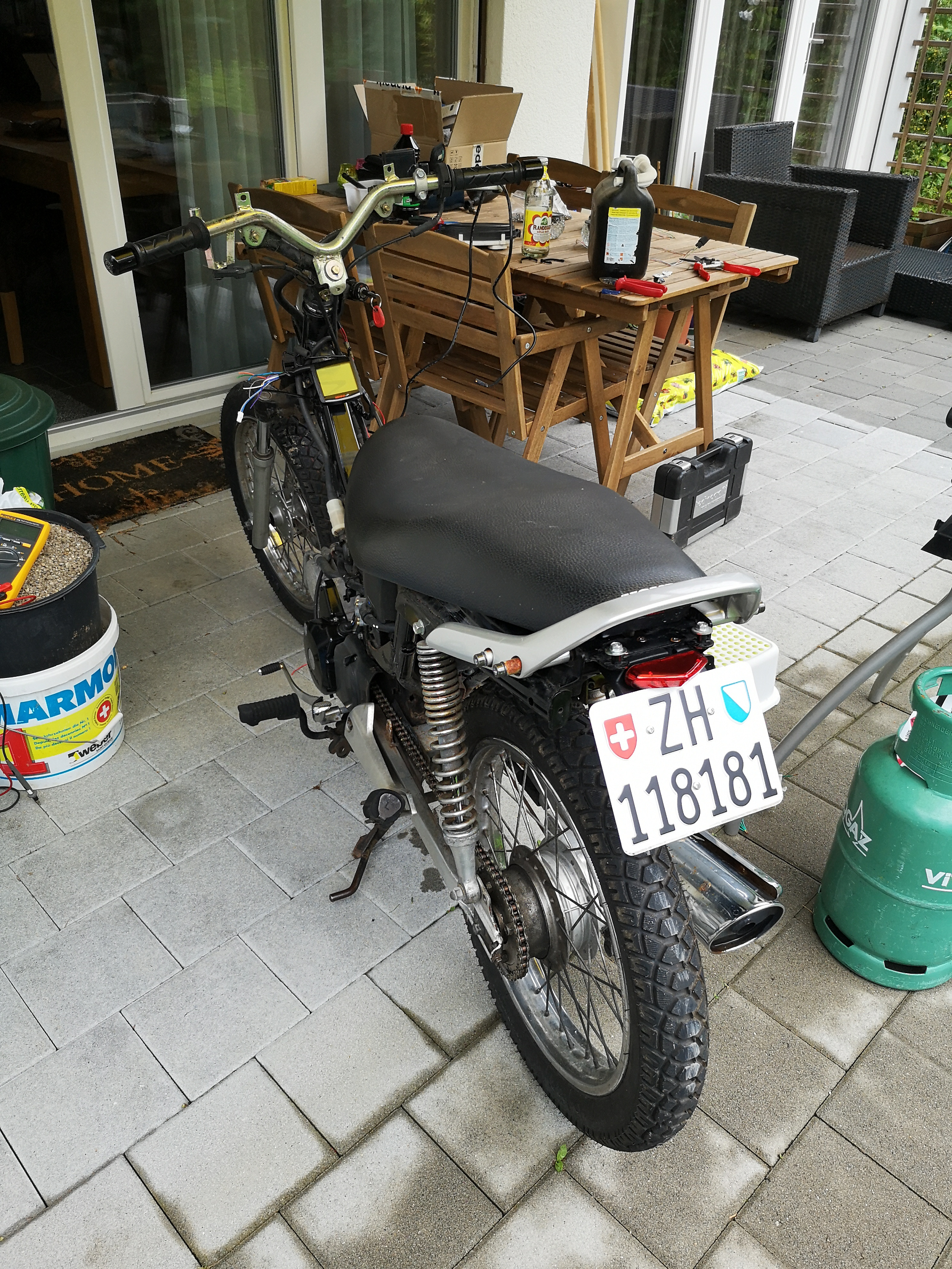Vorne fehlt noch ein Schutzblech und die ganze Verkablung muss noch "schön" gemacht werden - aber langsam find ich schaut die kleine toll aus