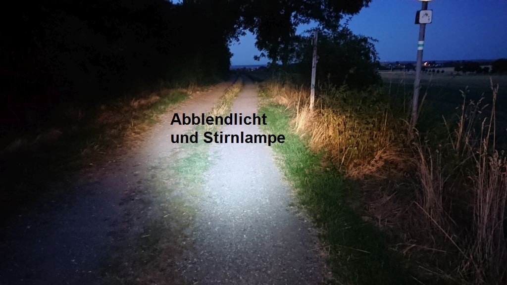 (Stirnlampe wird von der Camera wegen des hohen Weißanteils heller dargestellt als in der Realität, aber die Tendenz passt).